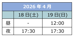 [東京公演] 2026年4⽉18⽇(土)~4月19⽇(⽇)